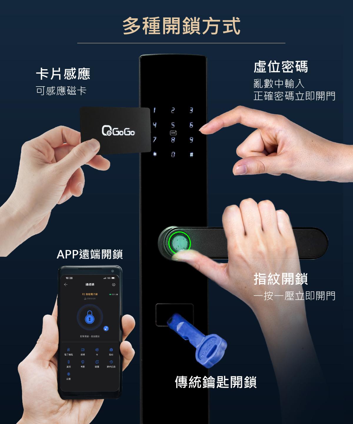 【QGOGO】R1 智能電子鎖 指紋/密碼/鑰匙/IC卡/APP