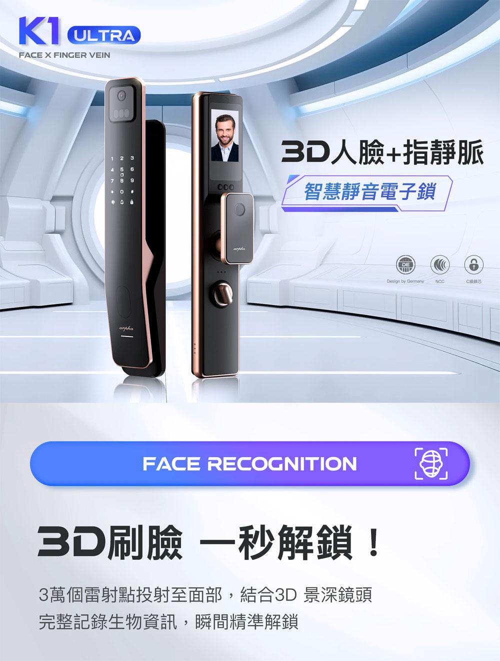 【Arpha】K1 Ultra 指靜脈人臉辨識全自動智慧電子鎖│Costco好市多熱銷推薦