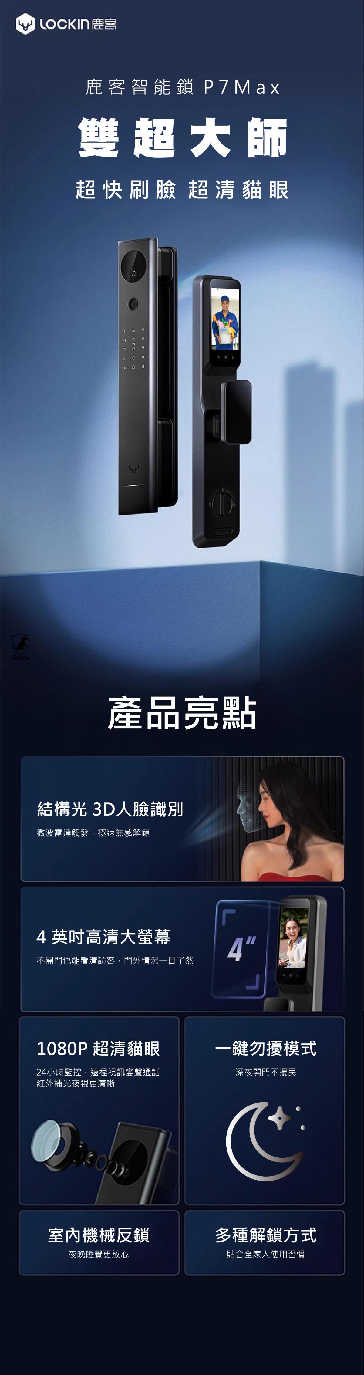 【LOOCK鹿客】P7max 人臉3D識別 貓眼智能電子鎖